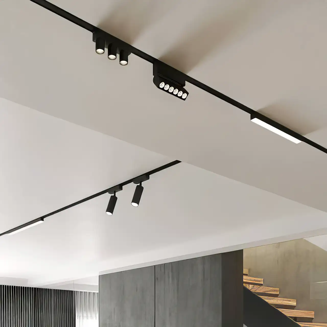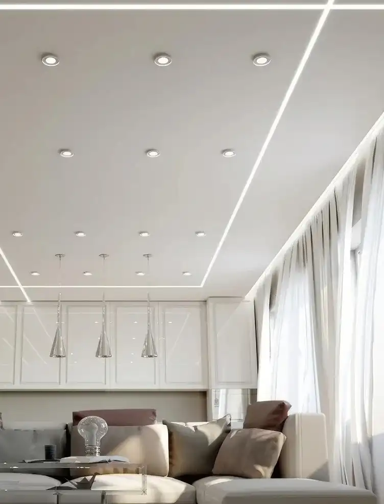 Трековые потолки подходят для разных помещений, идеально зонируют пространство и создают комфортное освещение.